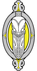 The taiaha is a powerful weapon that represents defence and protection. It has been used to protect people, defend land and strengthening mana. Symbolising the confidence to stand up for what you believe in. The taiaha is surrounded by a wakahuia (treasure box).