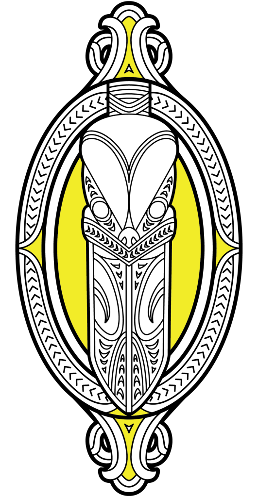 The taiaha is a powerful weapon that represents defence and protection. It has been used to protect people, defend land and strengthening mana. Symbolising the confidence to stand up for what you believe in. The taiaha is surrounded by a wakahuia (treasure box).